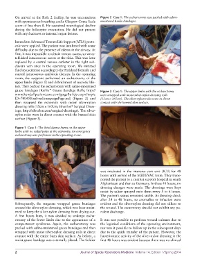 On arrival at the Role 2 facility, he was unconscious Figure 2 Case 1: The escharotomy was packed with saline-