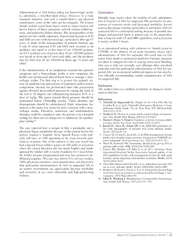 had a Special Forces Soldier sustain an AIS while in a location 6. Ward M, Rothwell PM. Paramedics should delay giving ASA to
