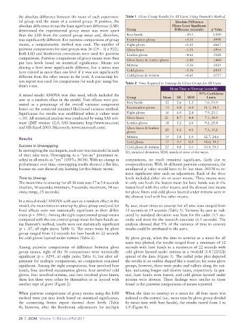 dent’s t-test. Table 2 Time Required to Unwrap by Glove Group for All Users