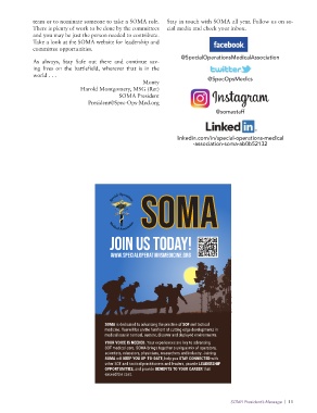 team or to nominate someone to take a SOMA role. Stay in touch with SOMA all year. Follow us on so-