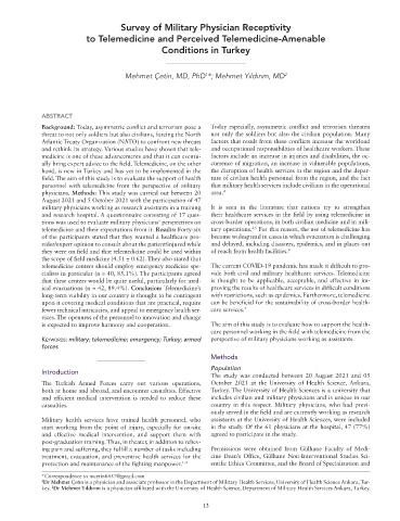 1 Dr Mehmet Çetin is a physician and associate professor in the Department of Military Health Services, University of Health Science Ankara, Tur-