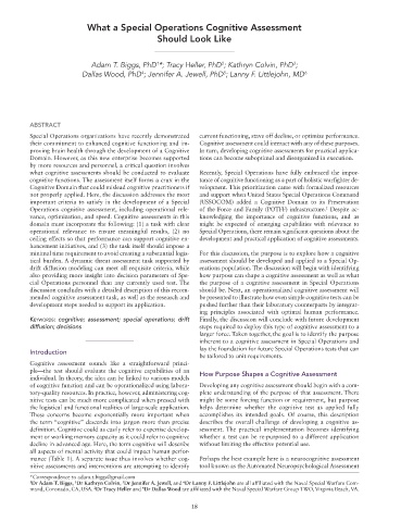 what cognitive assessments should be conducted to evaluate Recently, Special Operations have fully embraced the impor-