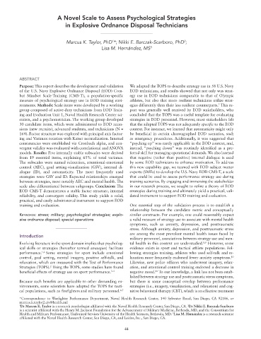 1 Dr Marcus K. Taylor is a research psychologist affiliated with the Naval Health Research Center, San Diego, CA. Dr Nikki E. Barczak-Scarboro