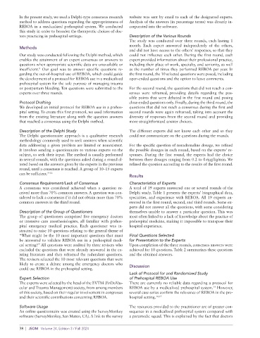 sidered to lack a consensus if it did not obtain more than 70% specialties, and experience with REBOA. All 19 experts an-
