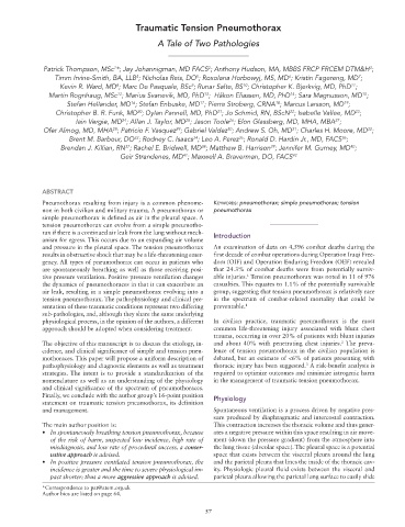 The objective of this manuscript is to discuss the etiology, in- and about 40% with penetrating chest injuries. The preva-