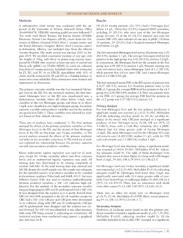 A retrospective chart review was conducted with the ap- Of all 65 trauma patients, (23, 35%) had a fibrinogen level