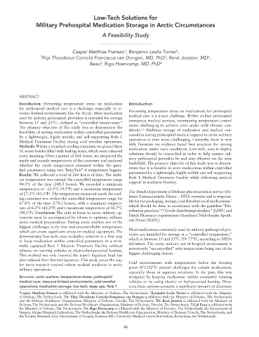 Keywords: arctic warfare; temperature stress; prehospital mitigated by keeping medication within constantly running