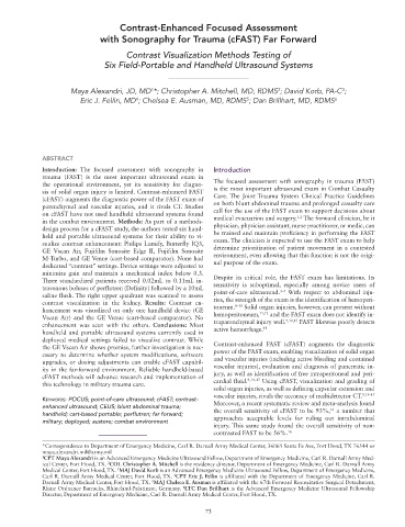 ity in the far-forward environment. Reliable handheld-based vascular injuries), evaluation and diagnosis of pancreatic in-