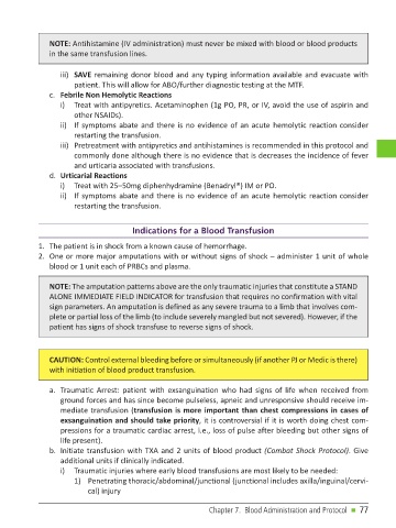 2. One or more major amputations with or without signs of shock – administer 1 unit of whole