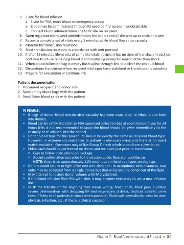 • If bags of donor blood remain after casualty has been evacuated, re-infuse blood back