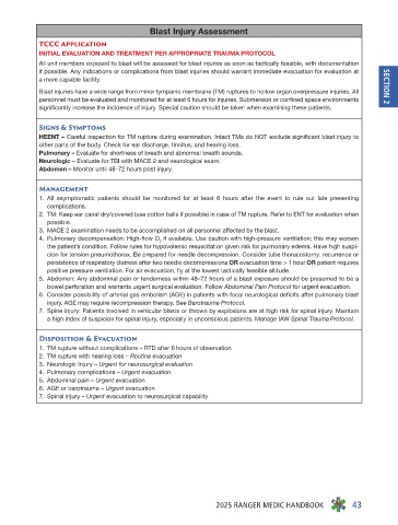 Blast injuries have a wide range from minor tympanic membrane (TM) ruptures to hollow organ overpressure injuries. All SECTION 2