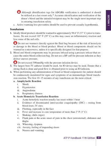sion reaction. The first 10–15 minutes of any transfusion are the most critical.