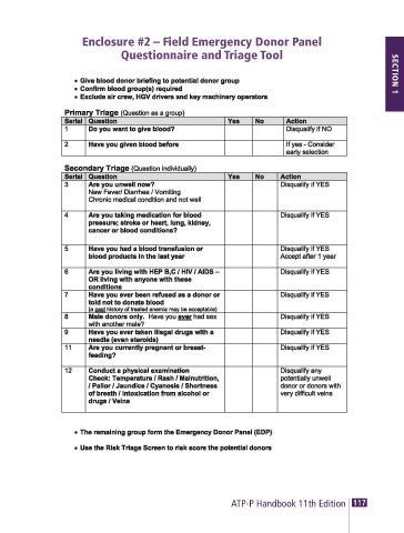Enclosure #2- FIELD EMERGENCY DONOR PANEL QUESTIONNAIRE AND TRIAGE TOOL Enclosure #2 – Field Emergency Donor Panel Questionnaire and Triage Tool SECTION 1 SECTION 1 116 SECTION 1 TACTICAL TRAUMA PROTOCOLS (TTPs) ATP-P Handbook 11th Edition 117 53