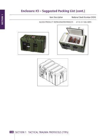 Enclosure #3 – Suggested Packing List (cont.) SECTION 1 BLOOD PRODUCT REFRIGERATOR/FREEZER 4110-01-506-0895 National Stock Number (NSN) Item Description 126 SECTION 1 TACTICAL TRAUMA PROTOCOLS (TTPs) ATP-P Handbook 11th Edition PB