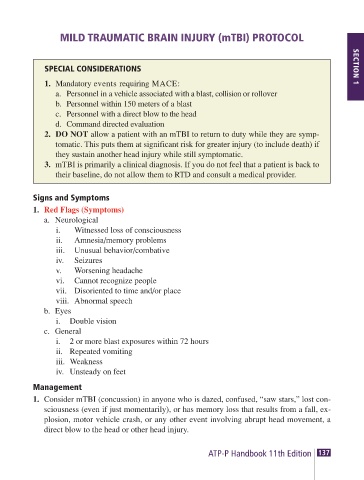 MILD TRAUMATIC BRAIN INJURY (mTBI) PROTOCOL