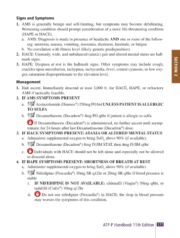 3. HAPE: Dyspnea at rest is the hallmark signs. Other symptoms may include cough, SECTION 2