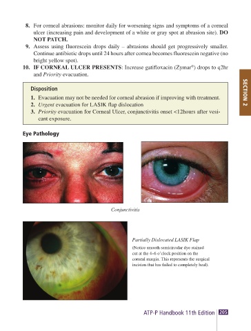 3. Priority evacuation for Corneal Ulcer, conjunctivitis onset <12hours after vesi-