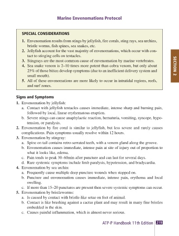 1. Envenomation results from stings by jellyfish, fire corals, sting rays, sea urchins,