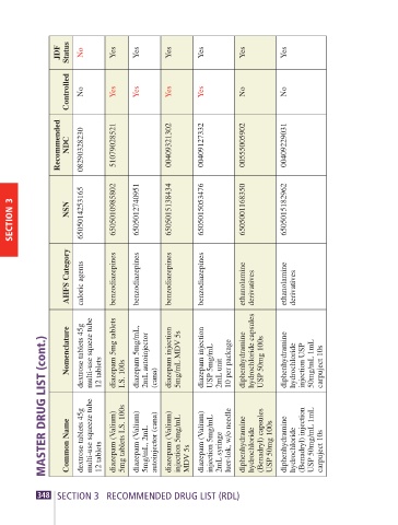 MASTER DRUG LIST (cont.) Nomenclature Common Name dextrose tablets 45g dextrose tablets 45g multi-use squeze tube multi-use squeeze tube 12 tablets diazepam 5mg tablets diazepam (Valium) I.S. 100s 5mg tablets I.S. 100s diazepam 5mg/mL, diazepam (Valium) 2mL autoinjector 5mg/mL, 2mL (can