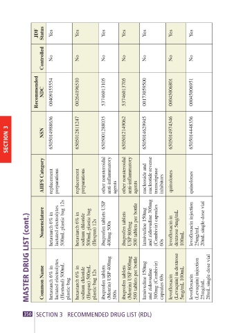 350 SECTION 3 RECOMMENDED DRUG LIST (RDL) capsules 60s levofloxacin levofloxacin 25mg/mL levofloxacin (Xylocaine) 2% injection loperamide mefloquine I.S. 100s 20mL