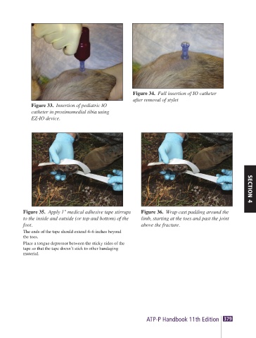 Figure 35. Apply 1" medical adhesive tape stirrups Figure 36. Wrap cast padding around the SECTION 4