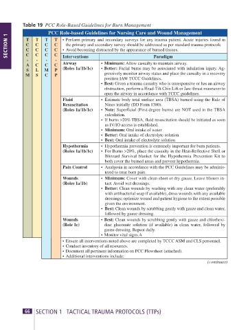 Table 19 PCC Role-Based Guidelines for Burn Management