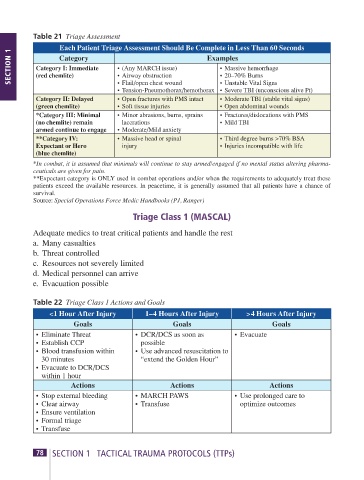 Table 22 Triage Class 1 Actions and Goals
