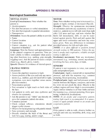 Language: Note the fluency and appropriateness strength testing in TBI patients. Unless the pa-
