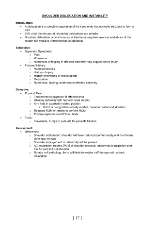 o $& VHSDUDWLRQ WUDXPD 520 RI VKRXOGHU UHGXFHG WHQGHUQHVV WR SDOSDWLRQ RYHU