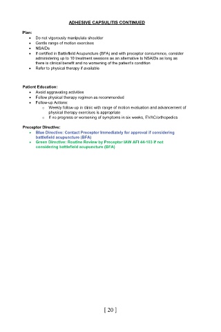 • If certified in Battlefield Acupuncture (BFA) and with preceptor concurrence, consider