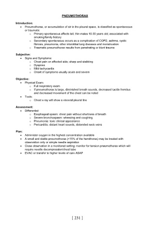 • 3QHXPRWKRUD[ RU DFFXPXODWLRQ RI DLU LQ WKH SOHXUDO VSDFH LV FODVVLILHG DV VSRQWDQHRXV