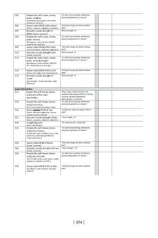 105. Palpate the soft tissues, bones, “no soft tissue swelling, tenderness,