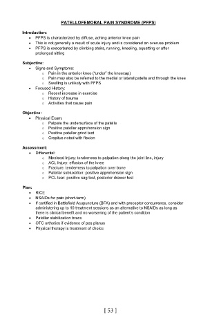 • 3)36 LV FKDUDFWHUL]HG E\ GLIIXVH DFKLQJ DQWHULRU NQHH SDLQ