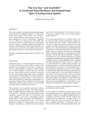 Keywords: cricothyrotomy, airway device, Cric-Key™, Cric- /ADR_CricothyrotomyKits]) or wire-guided and needle