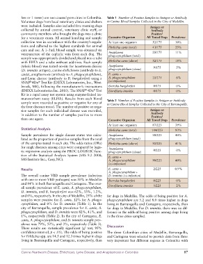 city of Barranquilla, sample prevalence for E. canis, A. for dogs in Medellin. For D. immitis, there was no dif-