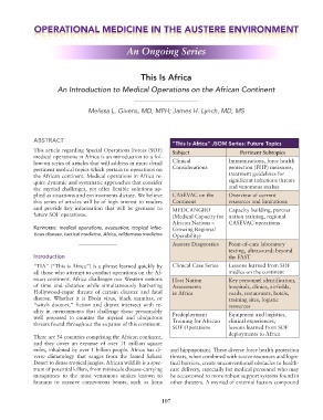tious disease, tactical medicine, Africa, wilderness medicine Operability)
