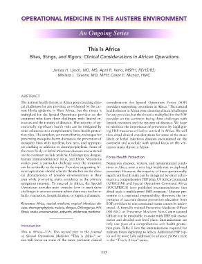 of Special Operations Medicine “This is Africa” se- ics will be more fully addressed in a future JSOM article