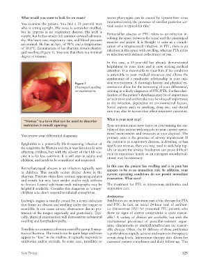 of 38.0ºC. Examination of his pharynx reveals pharyn- infection in this space with swelling, whereas PTA refers