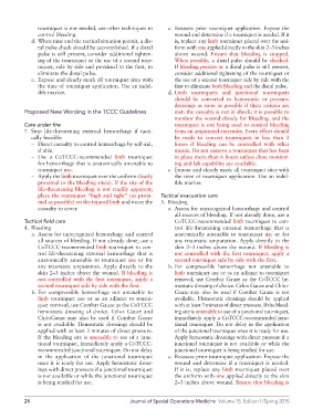 CoTCCCrecommended limb tourniquet to con skin 2–3 inches above the wound. If bleeding is