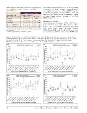 than under the Strap. (C) CAT Base Occlusion Pressures were lower than Tactical RMT Ladder Occlusion Pressures.