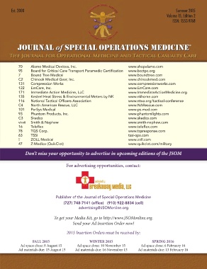 the unique readership of the Journal of Special Operations tactical, operational, and clinical medicine. It provides For advertising opportunities, contact: