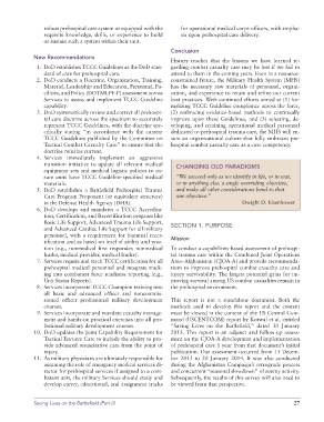 1. DoD establishes TCCC Guidelines as the DoD stan- garding combat casualty care may be lost if we fail to