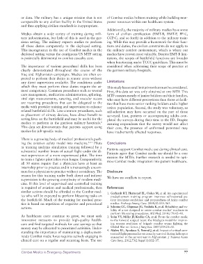 the battlefield. Much of the training for medical prac- tient treatment confidence and preparedness of Army combat