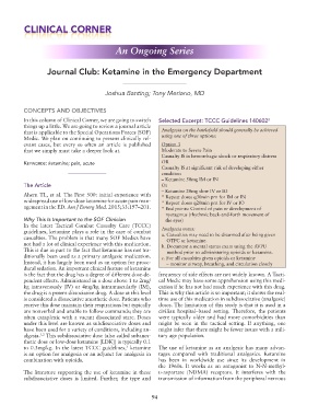 Journal Club: Ketamine in the Emergency Department