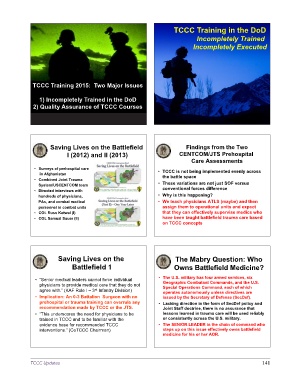 • Surveys of prehospital care • TCCC is not being implemented evenly across