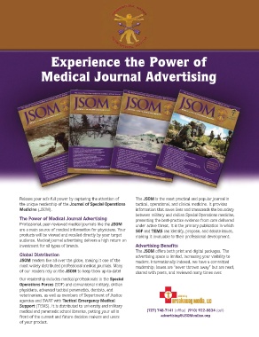 the unique readership of the Journal of Special Operations tactical, operational, and clinical medicine. It provides