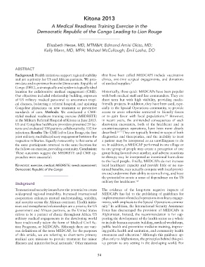 Congolese physicians on new treatment or preventive cially in the Special Operations community, to provide