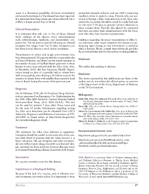 and sexual transmission of the disease have been reported. repellents when in endemic areas. Patients who are sus-