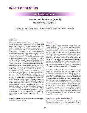 conventional shoes impact the ground heel first (rear- that have compared injury rates based on biomechanical