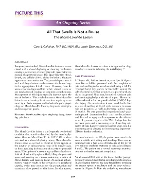 size of the lesion. This article discusses a Morel-Lavallée and an enlarging bulge at the site of impact. He was ini-